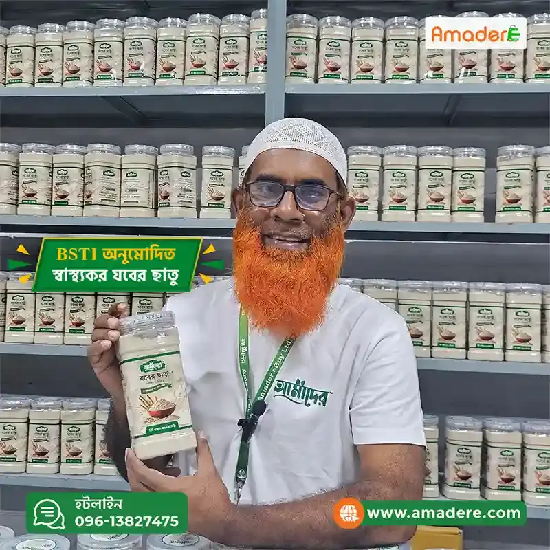 আমাদের যবের ছাতু (Amader Jober Chatu)তৈরি হয় খাঁটি দেশি যব থেকে, কোনো প্রকার কেমিক্যাল, পালিশ বা কৃত্রিম উপাদান ছাড়াই। এটি একটি প্রাকৃতিক ও সুন্নতী খাবার, যা হজমের সমস্যা দূর করতে বিশেষভাবে উপকারী। নিয়মিত যবের ছাতু খেলে খাবার হজম সহজ হয়, এসিডিটি ও গ্যাস্ট্রিকের সমস্যা কমে এবং নিয়মিত পায়খানা পরিষ্কার হতে সাহায্য করে।